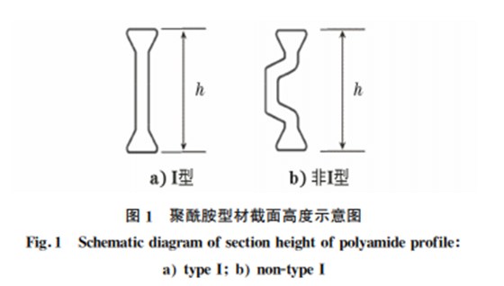 聚酰胺型材根據(jù)截面結(jié)構分為I型和非I型兩 類[2],如圖1所示,其中h為聚酰胺型材截面高度。
